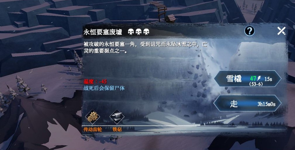 除了中型矿山,清理营地废墟时也有机会获得锡矿,不过这种方式需要达到一定的声望要求。如果选择在中型矿山采集,可以顺带收集石灰石,这种材料对升级3级地板很有帮助。抗寒性足够的情况下,可以不带熟食,只靠冰浆果补充饥饿值和口渴值,节省背包空间。中型矿山还会少量产出石英石,如果携带铁镐(需3级科技解锁或100钻购买钢镐),可以顺便采集。