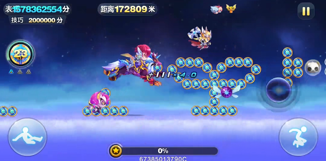 提升实力需要掌握核心技巧,包括灵活运用角色技能和坐骑特性。玩家应练习跳跃和滑翔的时机,以避开黑洞、钉刺等常见障碍。拾取金币和使命力求标不仅能增加分数,还能积累资源用于购买道具。选择具有冲刺或复活能力的角色组合,可以增强在高速环境下的稳定性,而宠物和精灵的搭配能提供额外保护或得分加成。